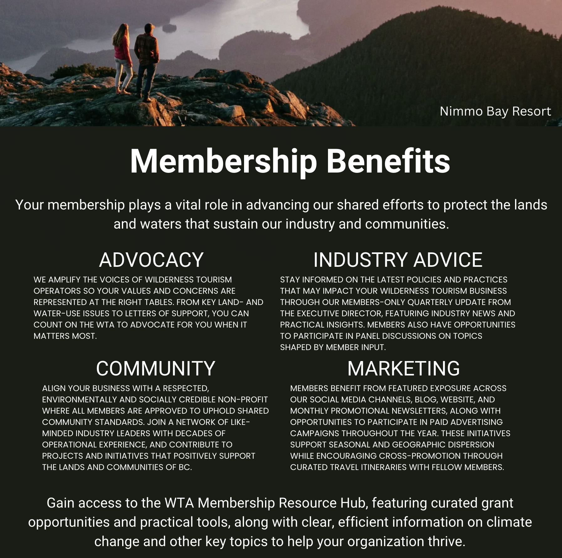 As of 2026 the WTA has launched a new tiered membership system that tailors our services to meet a wider range of people and organizations who are as passionate about wilderness tourism as we are.
